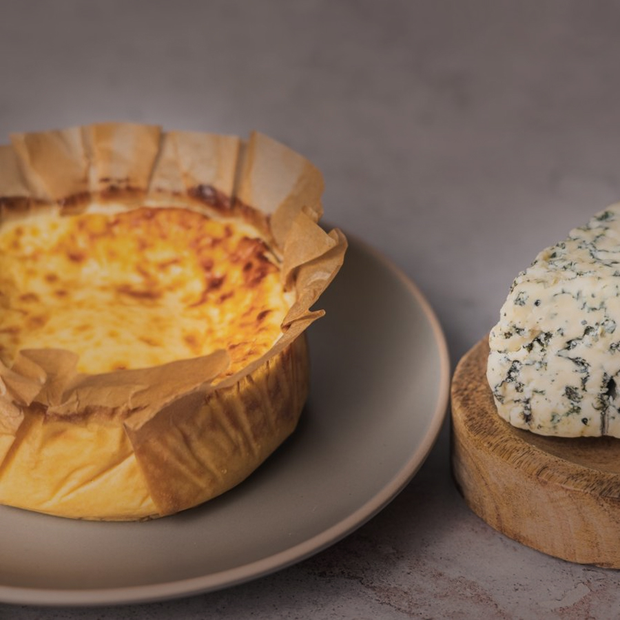 Una explosión de sabor en cada bocado. Nuestra tarta con más carácter para los más queseros, intensa pero equilibrada, Gongonzola dulce y Cabrales, un sabor audaz y profundo.